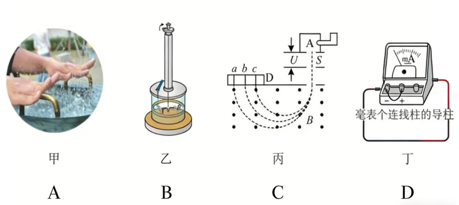 D、丁图:是毫安表,在运输时要把正负接线柱用导线连在一起,这是利用了电磁驱动原理来保护电表指针。